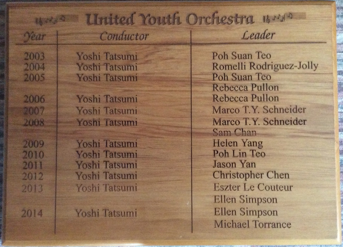 On 14th Feburary, 2003, comprising around 30 members with ages from ~13 to ~23 years (secondary school age and up), the United Youth Orchestra (UYO) was formed.